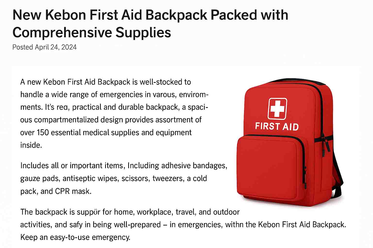 C'est pourquoi les voyageurs intelligents et les survivants se tournent vers les kits d'urgence de Kebon - compacts, robustes et spécialement conçus pour gérer l'inattendu.